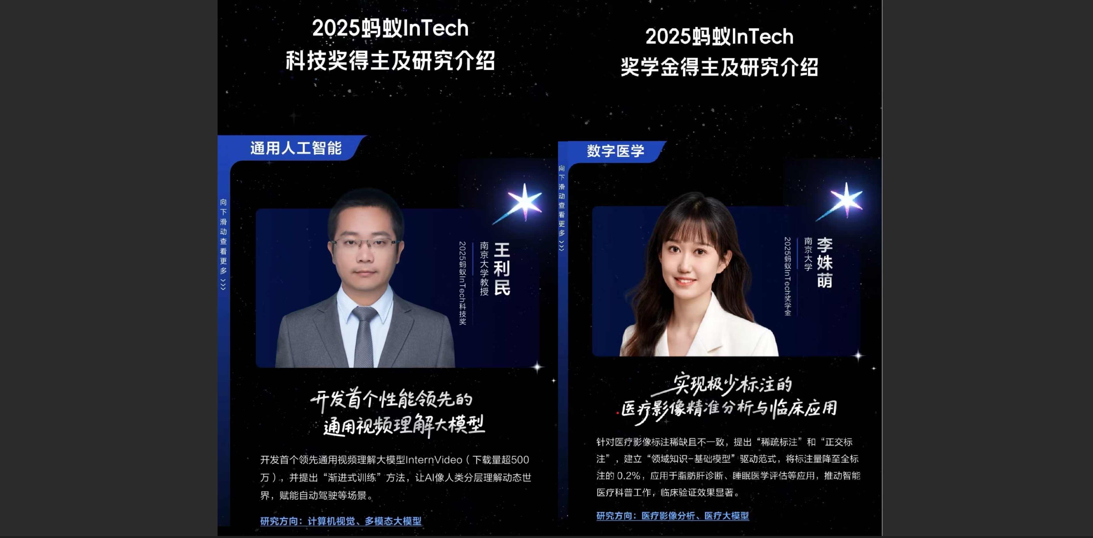 星际娱乐城 王利民教授获2025蚂蚁Intech科技奖,李姝萌博士生获蚂蚁Inte...