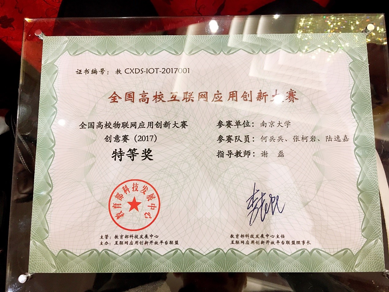 图1 全国高校物联网应用创新大赛创意赛特等奖