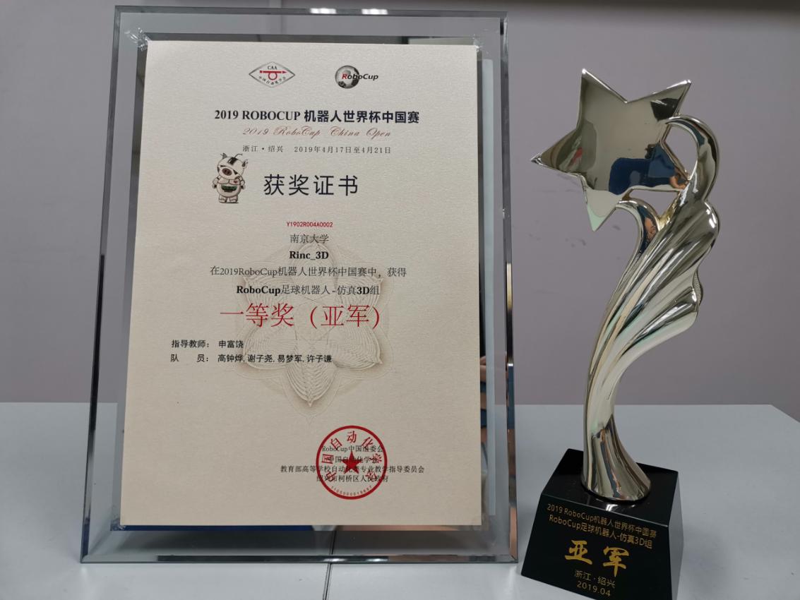 2019年4月18日-21日,2019 RoboCup机器人世界杯中国赛在浙江绍兴柯桥中国轻纺城国际会展中心举行。经过三天的激烈角逐,我系机器人智能与神经计算研究组(//xjylcofficial.com/rinc/index.html)的“Rinc_3D”团队(成员:高钟烨,谢子尧,易梦军,许子谦指导教师:申富饶)荣获仿真3D组一等奖(亚军)。