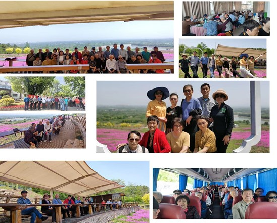 亲近自然 拥抱春天。阳春四月,就像川剧变脸,昨日还是春光明媚,阳光和煦,今天却变得艳阳高照,尤如一夜从春季变到夏季。气温虽高但不失春意盎然,鸟语花香,正宜踏青赏花,感受自然,亲近自然的好时节。在计算机系党委和行政的关心支持下,系退休教师党支部和退协分会组织退休老党员老同志和春天来个约会的主题春游活动。4月17日上午9:00,滿载计算机系50位老同志的大巴经过一小时左右的行车抵达第一站“句容天王山芝樱小镇”。