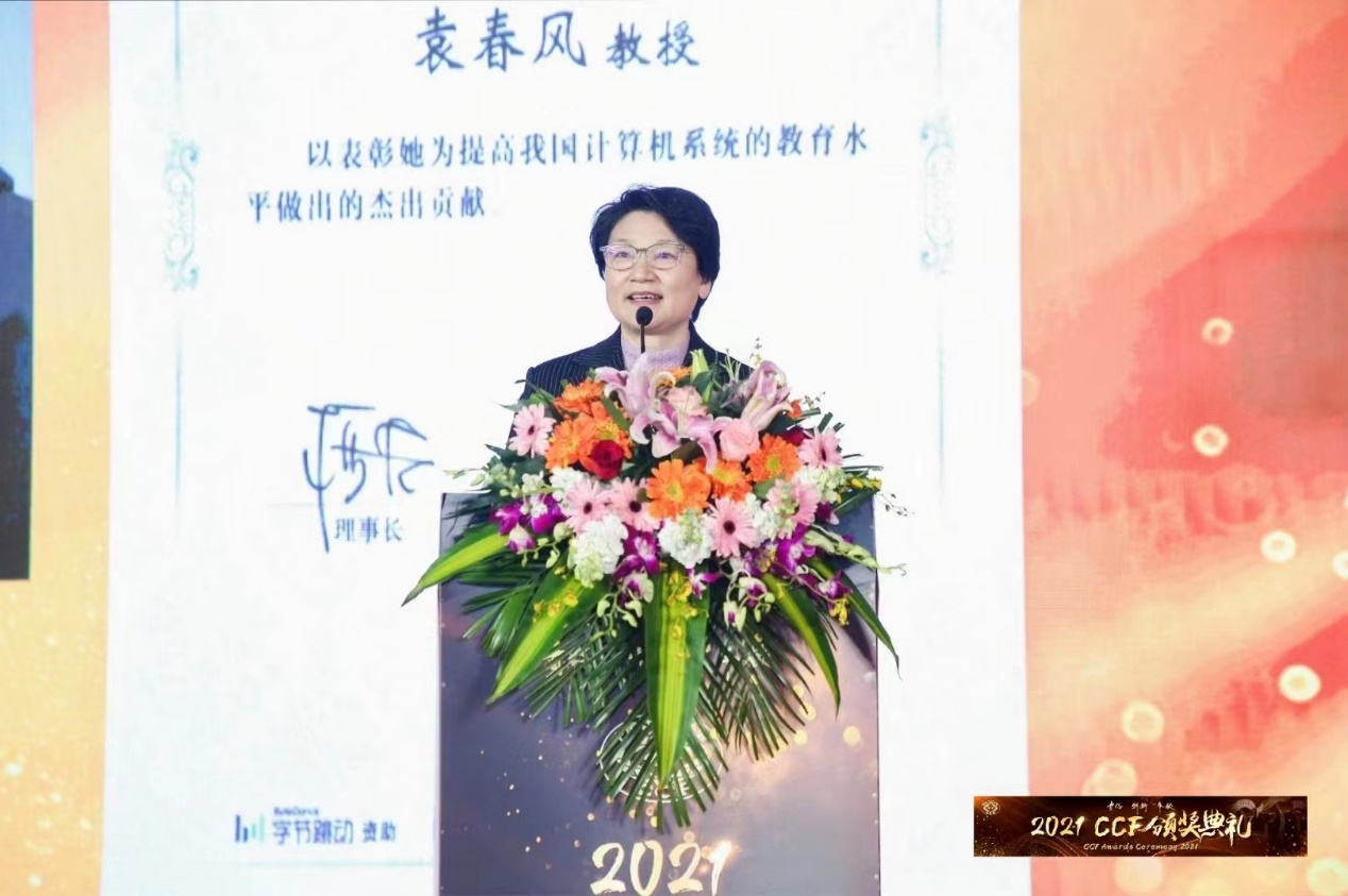 2021 CCF颁奖典礼于2022年2月19日在浙江横店圆明新园法国馆隆重举行。大会颁发了2021年度“CCF杰出教育奖”,星际娱乐城 计算机科学与技术系袁春风教授获此殊荣。该奖得到了北京字节跳动科技有限公司的赞助。CCF理事长梅宏教授、奖励委员会主席钱德沛教授为获奖者颁奖。