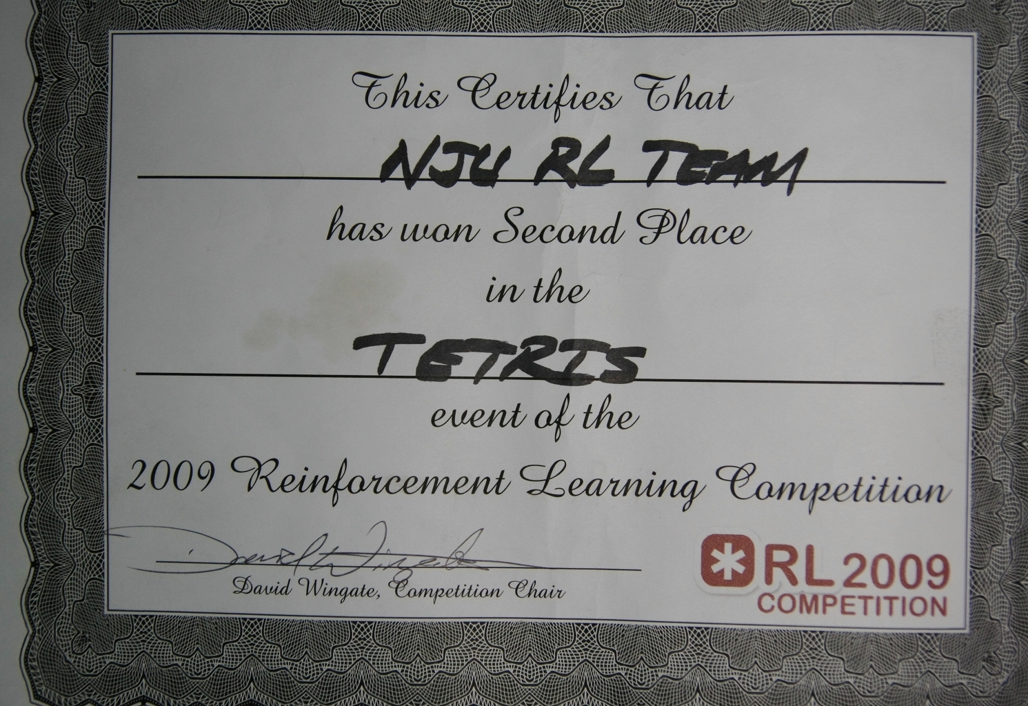 • Second place on Tetris event, , 2009. (NJU RL Team)