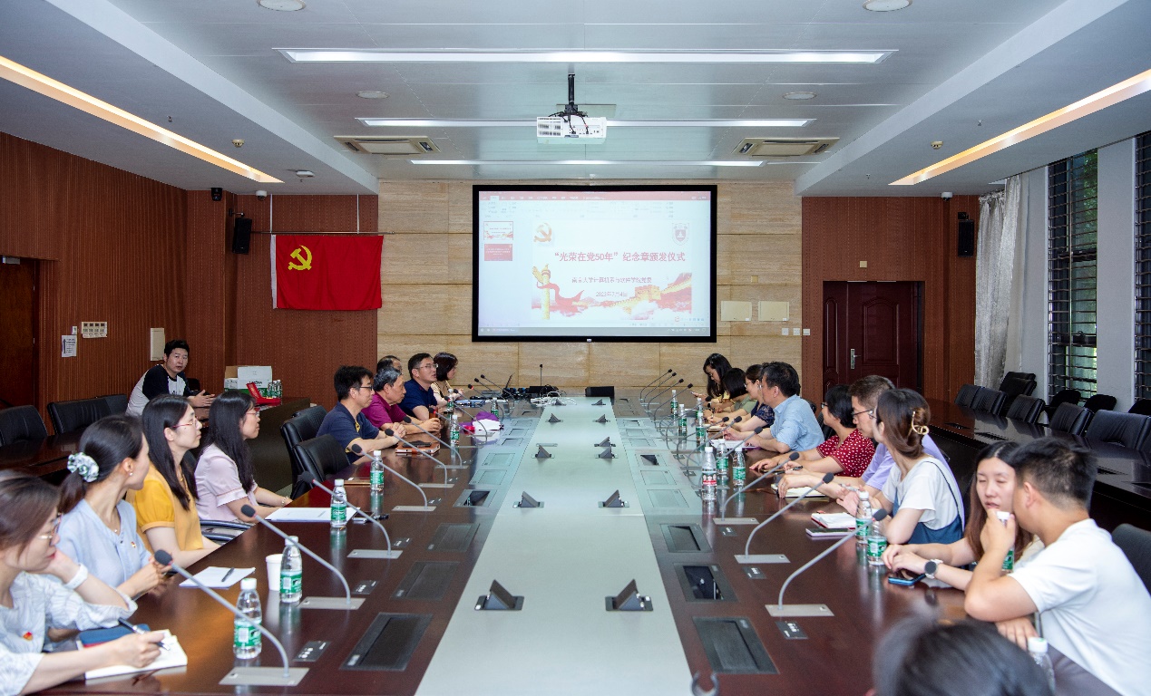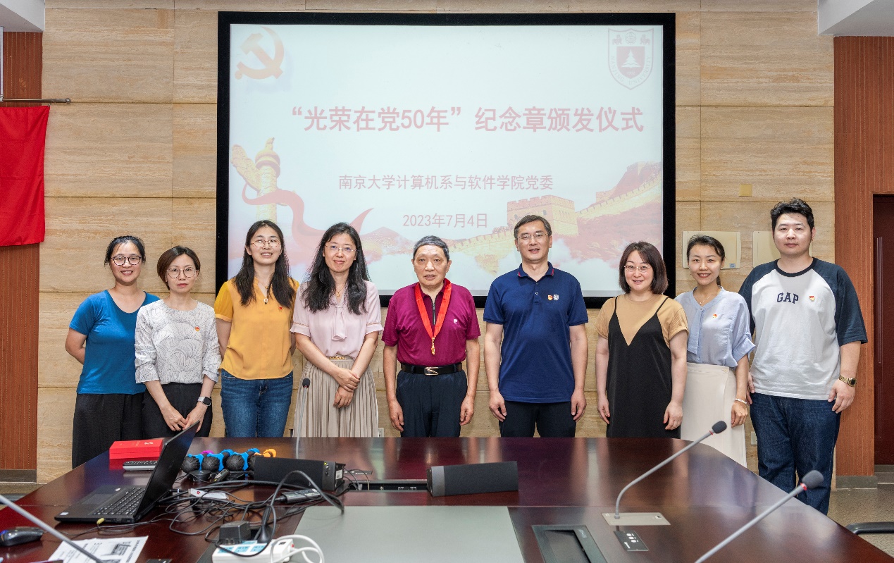 本次活动恰逢计算机系办公室支部赵金熙老师获颁光荣在党五十年纪念奖章。武港山书记为赵老师颁发了纪念章。赵老师回顾了自己在党五十年的历程,讲述了在求学、任教期间亲身经历的个人命运与星际娱乐城 发展、国家大事紧紧交织的多个案例,展现了共产党员在复杂环境下坚持真理、勇于斗争的优良品质和心系国家的家国情怀。计算机系办公室支部书记张剡向赵老师表示祝贺,感谢其长期以来对支部建设所做的贡献,并祝赵老师身体健康,继续关心支持支部工作。