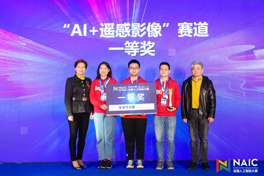 2020年12月21日,第二届全国人工智能大赛在深圳鹏城实验室举行了颁奖典礼。经过历时近4 个月的激烈角逐,我系媒体智能感知与内容理解研究组(IMAGINE Lab)(//xjylcofficial.com/lutong/)的“Amadeus”团队 (成员:陈喆,杨嘉文,王文海,导师:路通)以领先优势夺得AI+遥感影像赛道的冠军,获得 100万人民币的奖金。中国工程院院士于全和星河控股集团副董事长姚惠琼为冠军团队颁奖。
