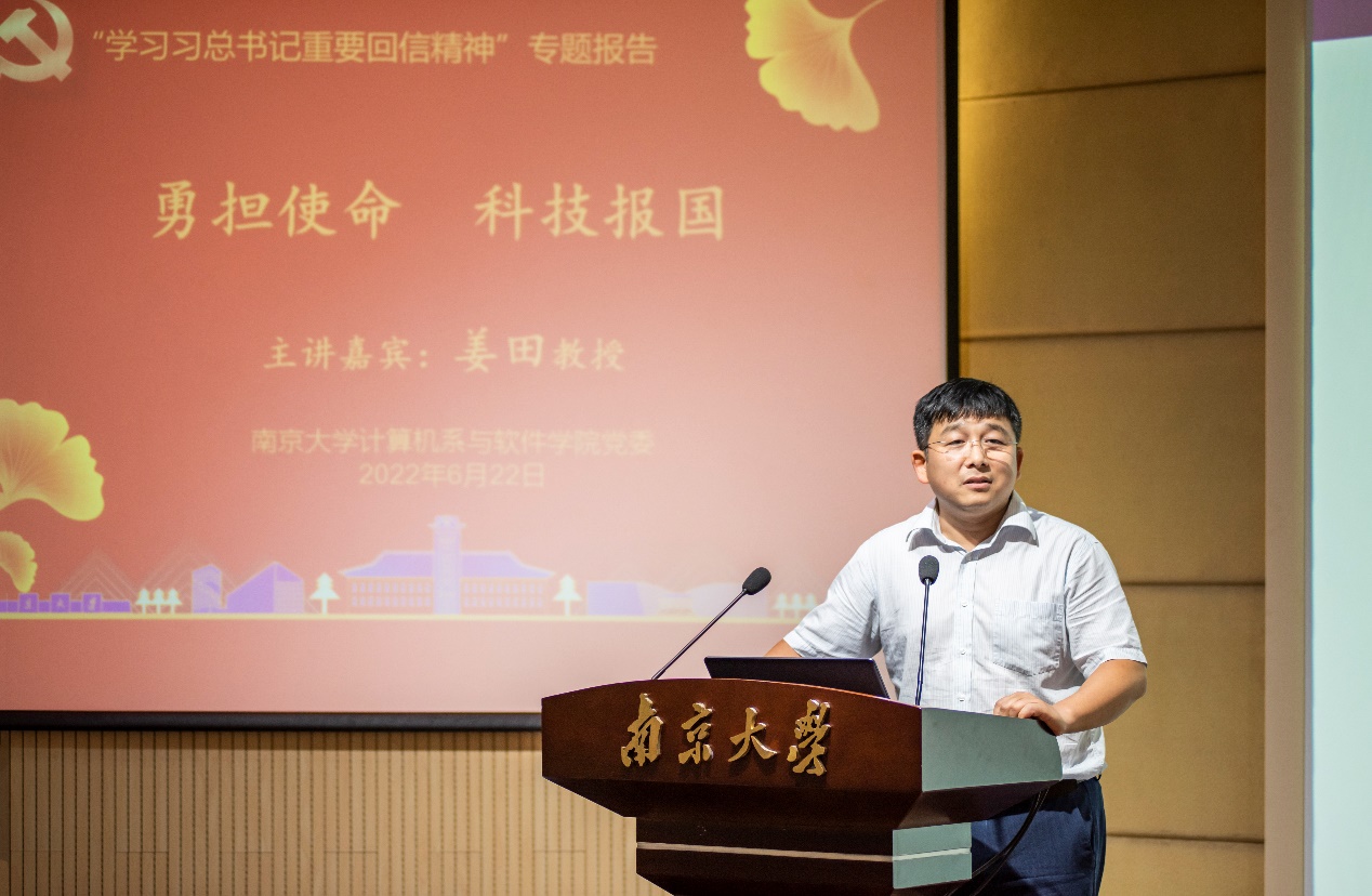 2022年6月22日下午,计算机系与软件星际娱乐城 党委邀请星际娱乐城 学习宣传习近平总书记重要回信精神专题宣讲团成员、科技处处长、电子科学与工程星际娱乐城 姜田教授,为全体师生党员、教职工讲授专题报告“勇担使命,科技报国”。计算机系与软件星际娱乐城 党委书记武港山主持会议。