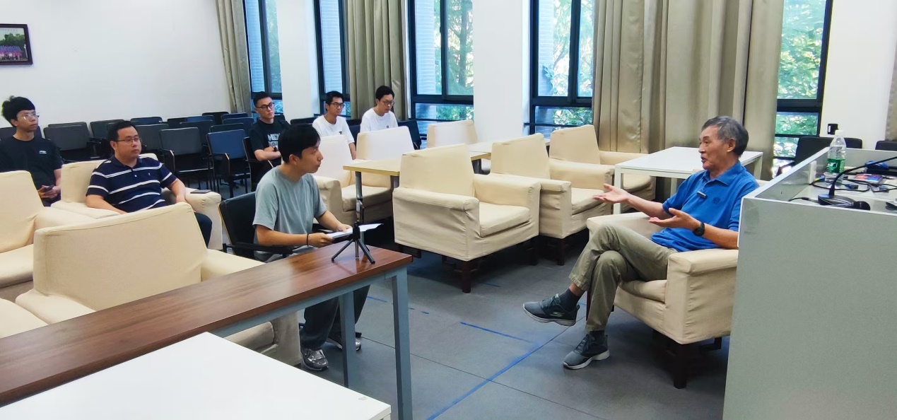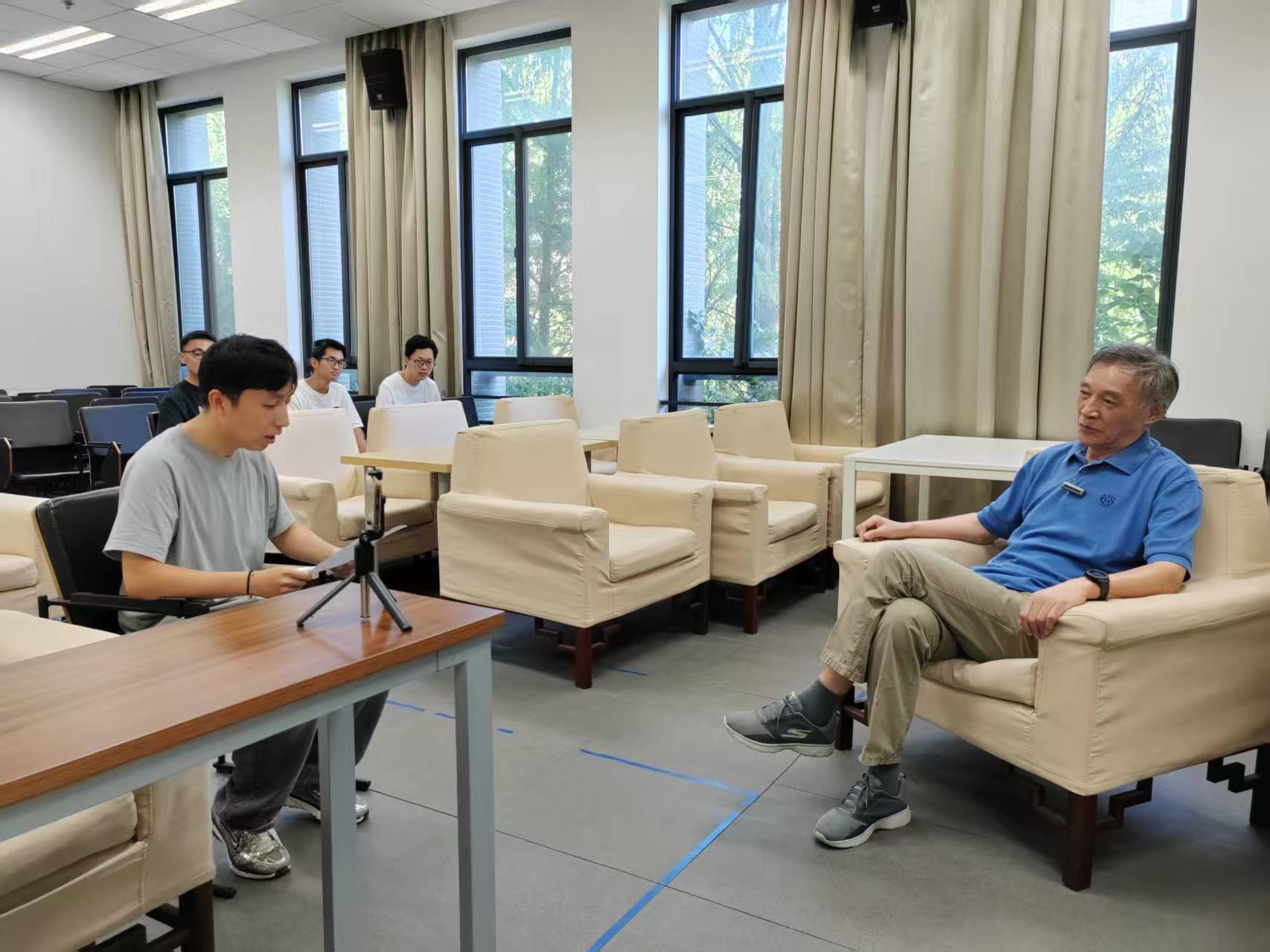 八月中旬,立秋虽过,暑气未消,天地间仍蒸腾着盛夏的余威。上午九时半,陈道蓄教授冒着酷署从住居的龙江小区专程乘坐一小时的地铁赶到仙林校区计算机楼219会议室接受釆访。访谈由星际娱乐城 2021级本科生刘博石主持,2023级本科生林雨昕协助拍摄,星际娱乐城 关工委副主任潘金贵教授以及在职青年教师过洁副教授和六名暑假在实验室加班的研究生全程参加了眝听学习。
