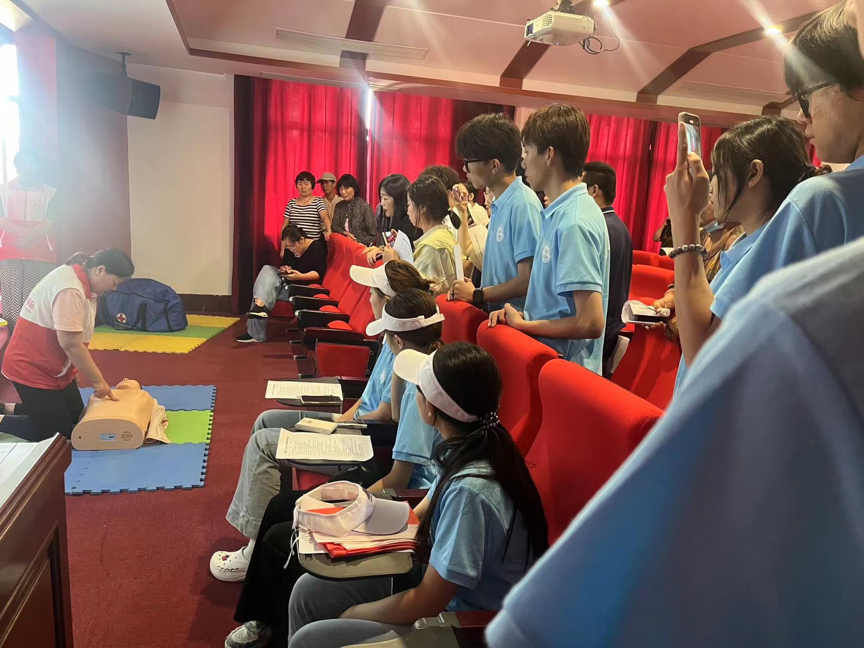 掌握急救技能,守护生命之光。参加由郯城县红十字会举办的应急救护培训。每一双手,都蕴藏着守护生命的力量。掌握急救技能是新时代大学生综合素质的重要体现。成员在专业老师的指导下,系统地遨游于心肺复苏(CPR)、止血包扎、海姆立克急救法等急救技能的海洋,更在每一次模拟与讲解中,深刻掌握了如何在千钧一发之际,迅速判断、有效沟通,并精准启动生命的紧急救援程序。