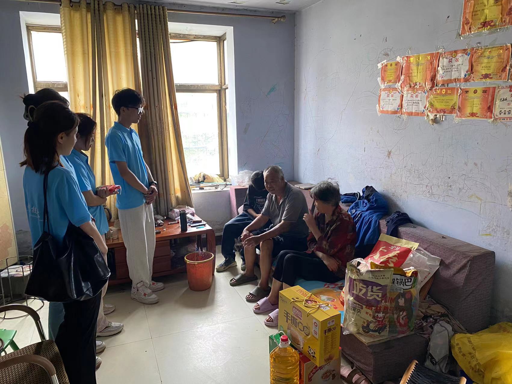 团委书记兼学工办主任颜枫一行5人来到归昌乡陈庄村看望留守儿童小辉同学。详细了解小辉同学的生活和学习情况以及存在的困难,向其普及防溺水、防火灾、防诈骗等安全自护知识,进一步增强安全防范意识。同时,叮嘱监护人关注孩子心理健康状况,多与孩子沟通交流,督促孩子认真学习,自强不息,乐观生活。