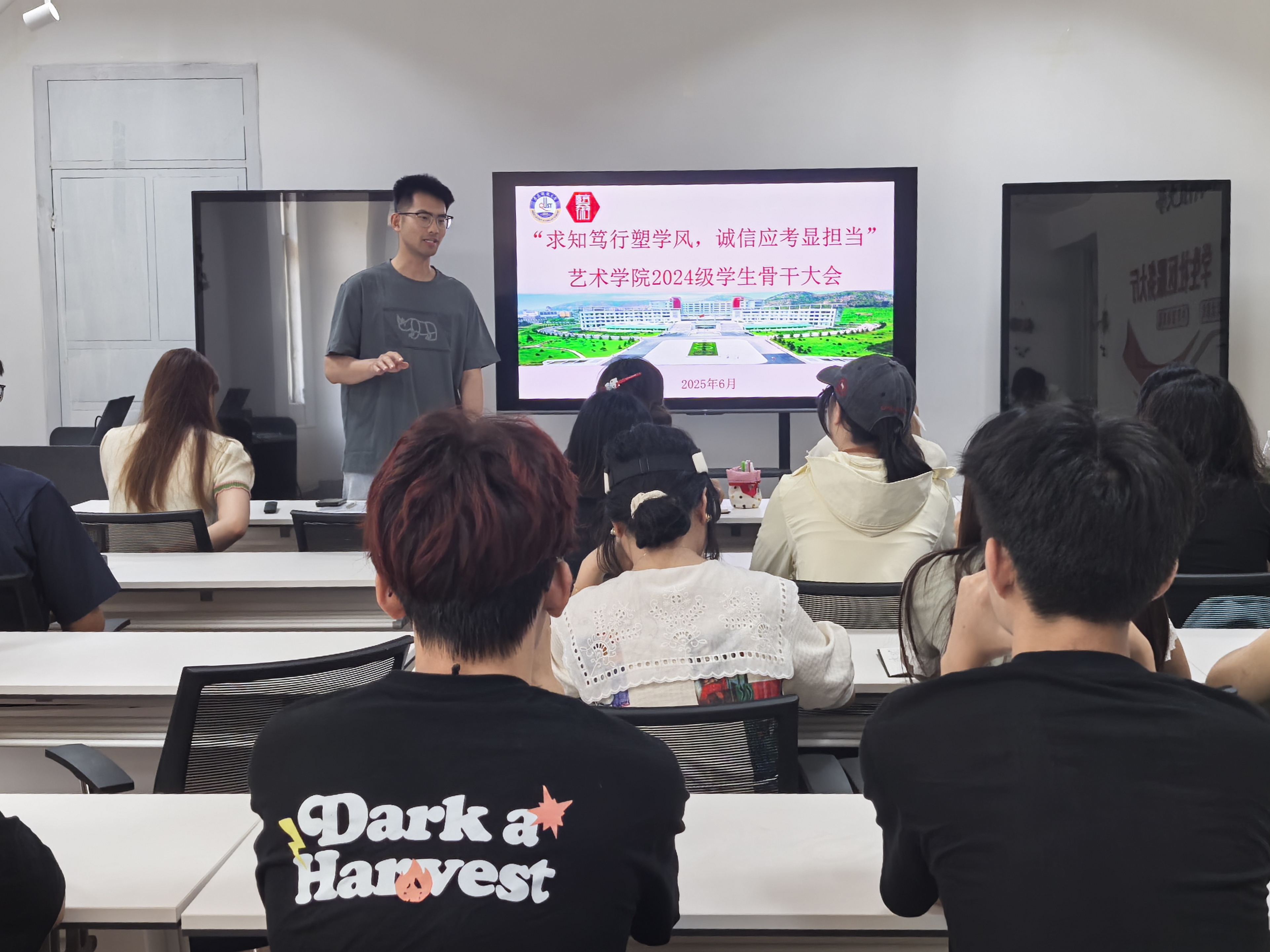 于一站式学生社区举办“求知笃行塑学风,诚信应考显担当”主题动员会议。会议由辅导员杨橙主持,2024级全体学生干部参加。