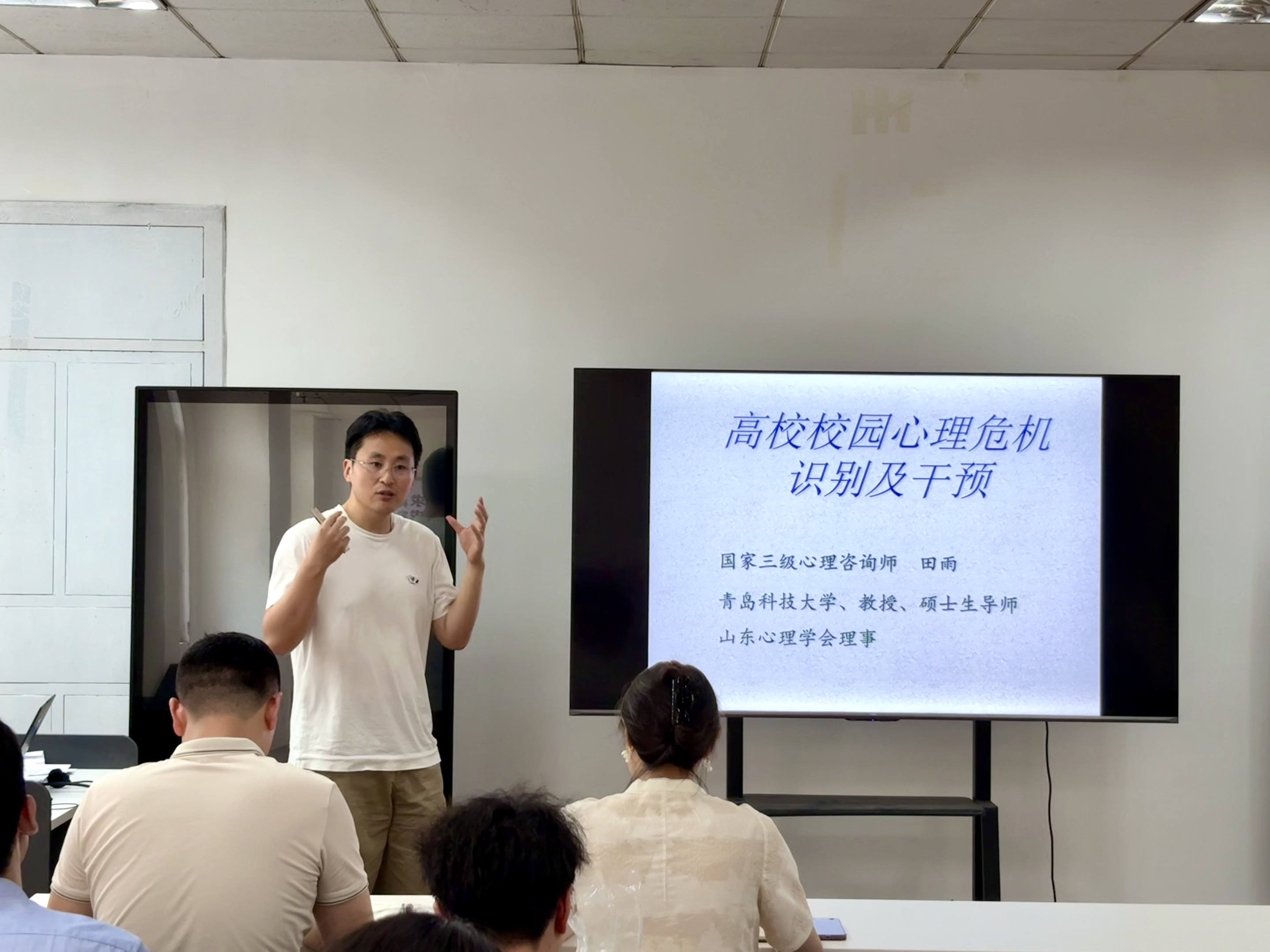 田雨围绕心理危机定义、大学生心理危机识别和心理危机干预三个部分展开讲解,结合自身所从事的心理学领域相关研究,既从理论层面讲解了危机风险因子的协同效应、心理危机表征的“共发”性,又从实际工作的角度讲述了处于危机学生的身心反应、教师如何识别有心理危机的学生,如何帮助学生将心理危机转化为成长机遇,以及大学生心理危机干预的原则和干预策略,为班主任等教师队伍做好大学生心理健康工作提供了指导。