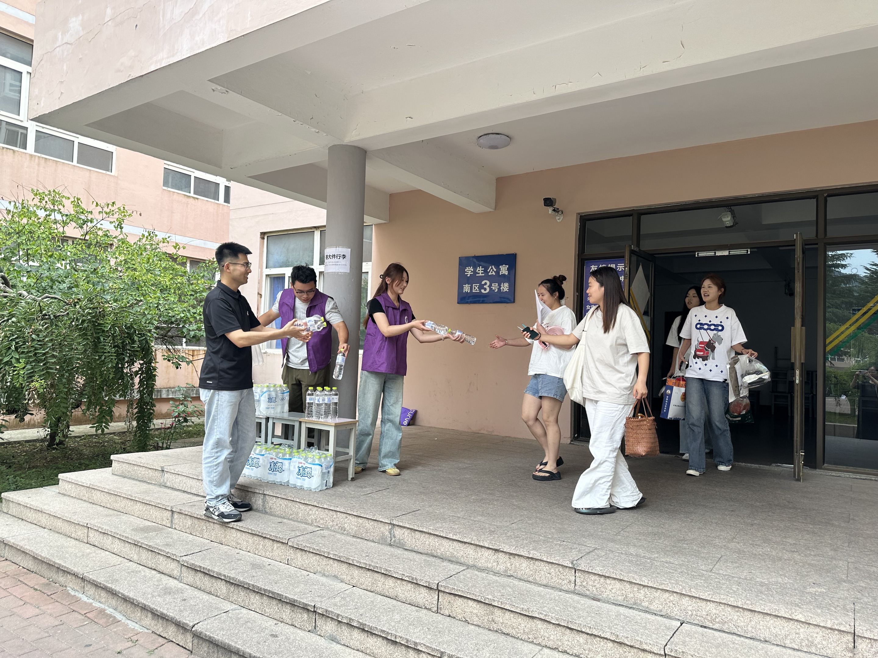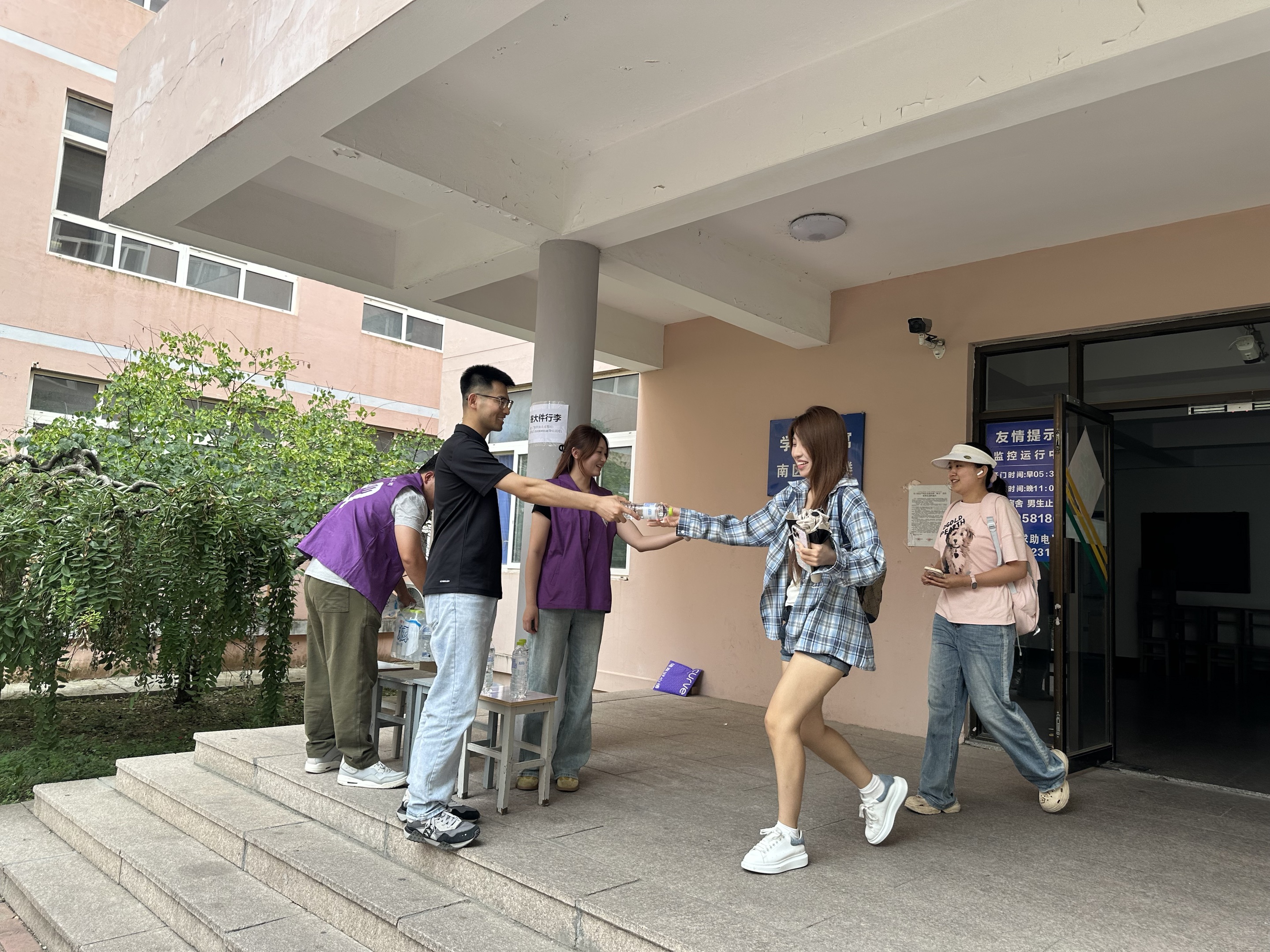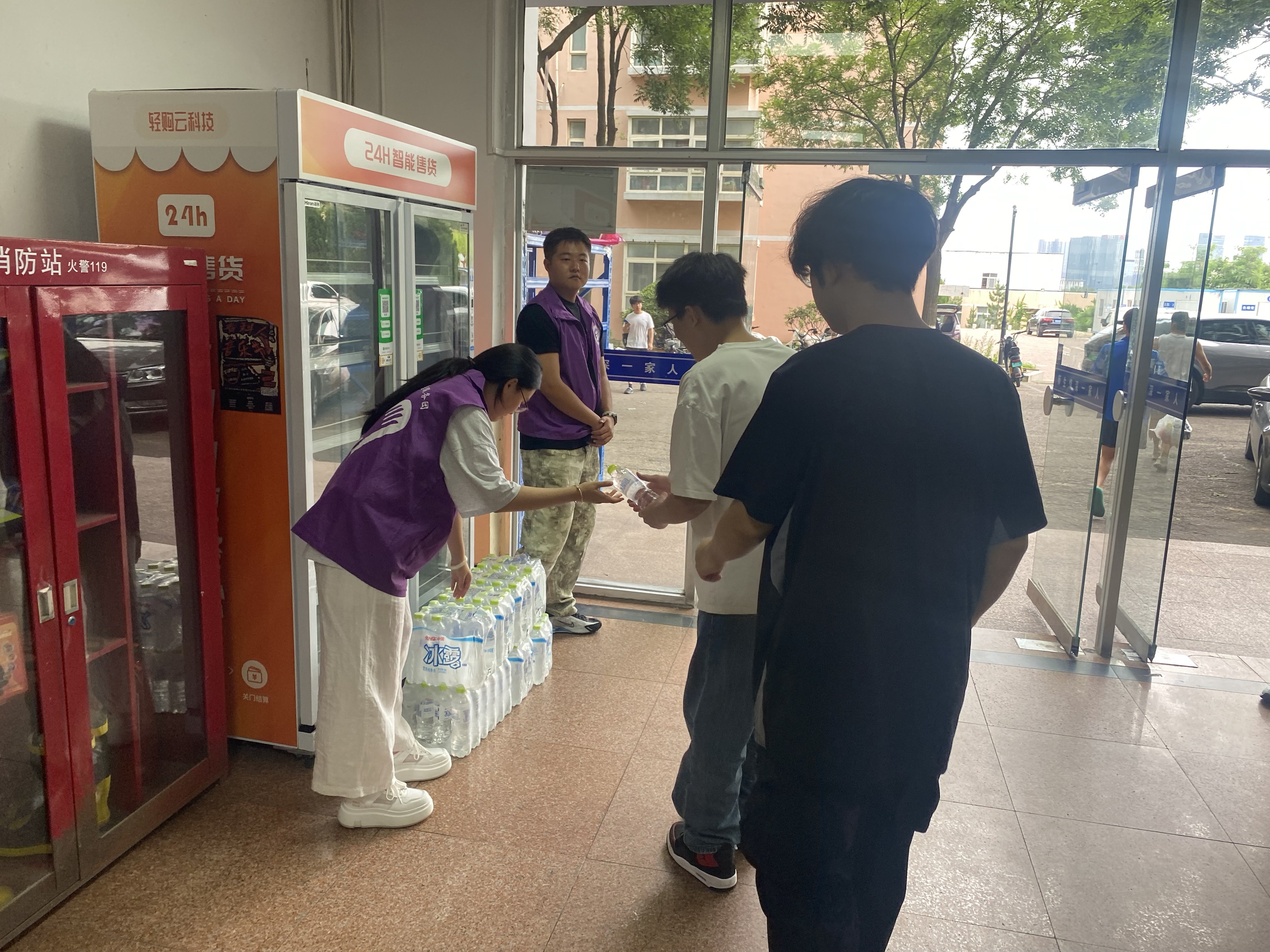 采购了矿泉水、冰糕、藿香正气水等防暑降温物资。志愿者们分成多个小组,分别前往教学楼、画室、琴房、学生宿舍等地,将清凉物资逐一送到学生中。现场气氛热烈而温馨,一句句“辛苦了”“请保重身体”,让学生们在炎炎夏日中感受到了家一般的温暖。