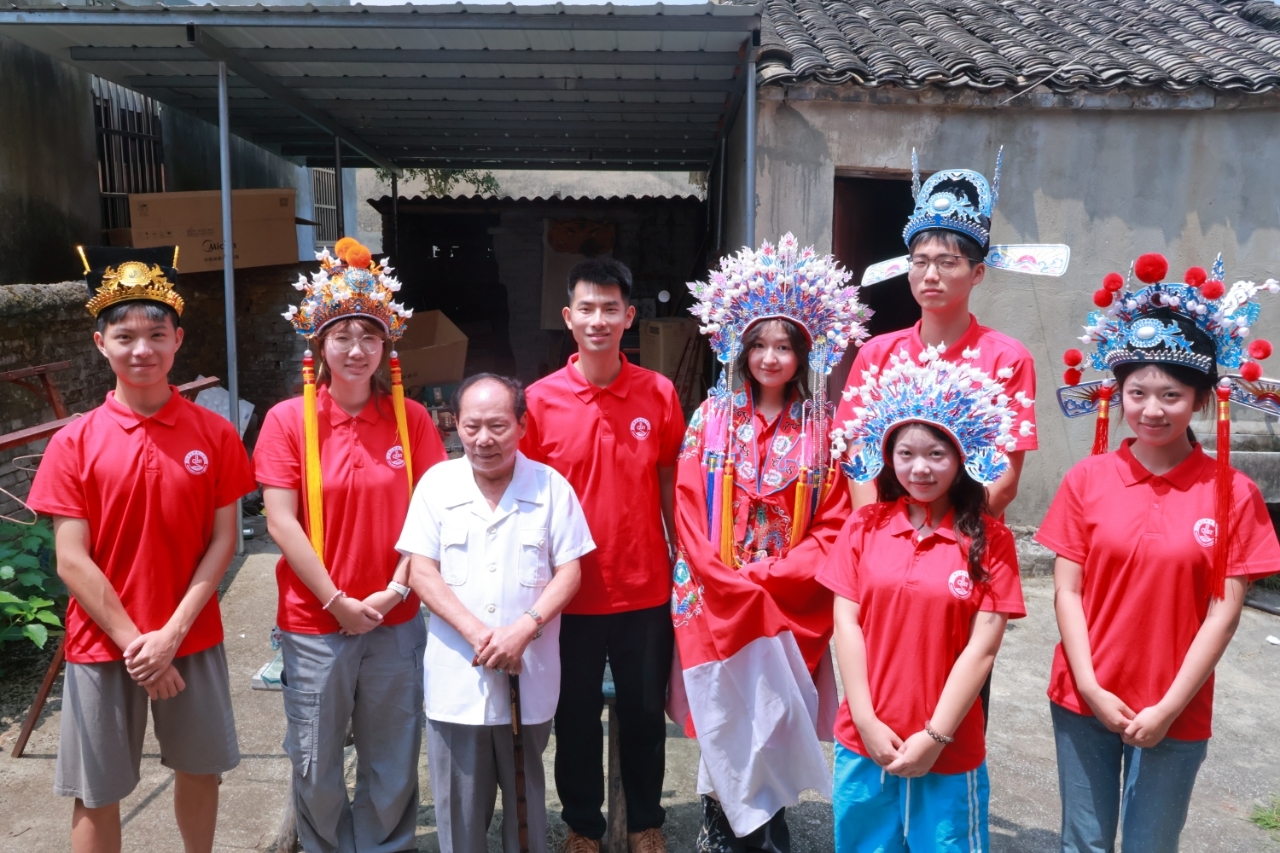 石牌镇作为国家非物质文化遗产黄梅戏的发源地,见证了黄梅戏起源成型、传承发展、班社繁荣。实践团深入这座戏曲之乡,以“传承黄梅戏非遗瑰宝“为使命,展开了一场沉浸式的文化溯源与创新实践。在徽班博物馆,历史的长卷徐徐展开,队员们系统梳理了黄梅戏的源流演变。非遗盔帽第五代传承人产和宝的工作室成为技艺传承的生动课堂,他不仅详解黄梅戏的百年风雨,更带领队员们亲历盔帽诞生的精妙工序。当青年学生披上华美戏服,传统艺术完成了从符号到体验的深刻转化。实践的高潮在乡村戏台绽放,团队成员怀抱民族乐器笙,与当地传承人即兴合作,经典唱段《女驸马》的清音与《大别山母亲》的深情在笙点染下焕发新韵,古老唱腔与传统器乐碰撞出传承的火花。这场跨越代际的共演,不仅是对非遗的虔诚致敬,更是青年以创新思维激活传统的生动宣言。从观摩到参与,从倾听对接到创新融合,这群大学生以青春视角丈量黄梅戏的深厚底蕴。他们在躬身实践中触摸文化根脉,更以当代青年的创造力,为非遗传承注入了鲜活的当代表达,在千年戏乡石牌镇,写下了传统与现代交融的生动注脚。