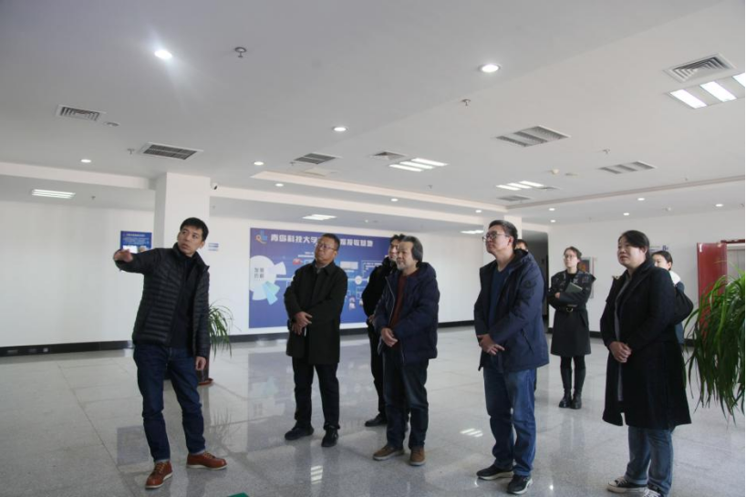 一行实地调研了校区艺术系实验室、安消一体化指挥中心、卫星数据处理中心与卫星数据接收基站。