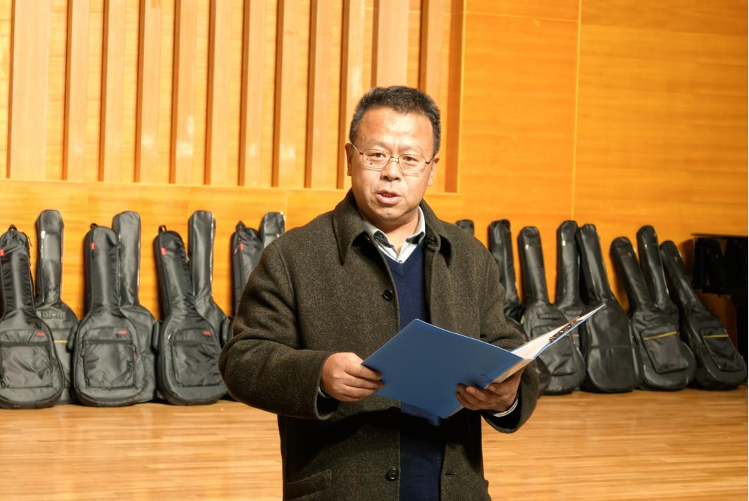 卢中彬向王生雷赠送捐赠纪念证书,李宏文向王生雷、王右、王闰颁发校外合作导师聘书,现场还向学生发放了四十五把吉他。捐赠仪式结束后举办了庆祝音乐会,王右老师、李猛老师和学生们表演了精彩的节目。