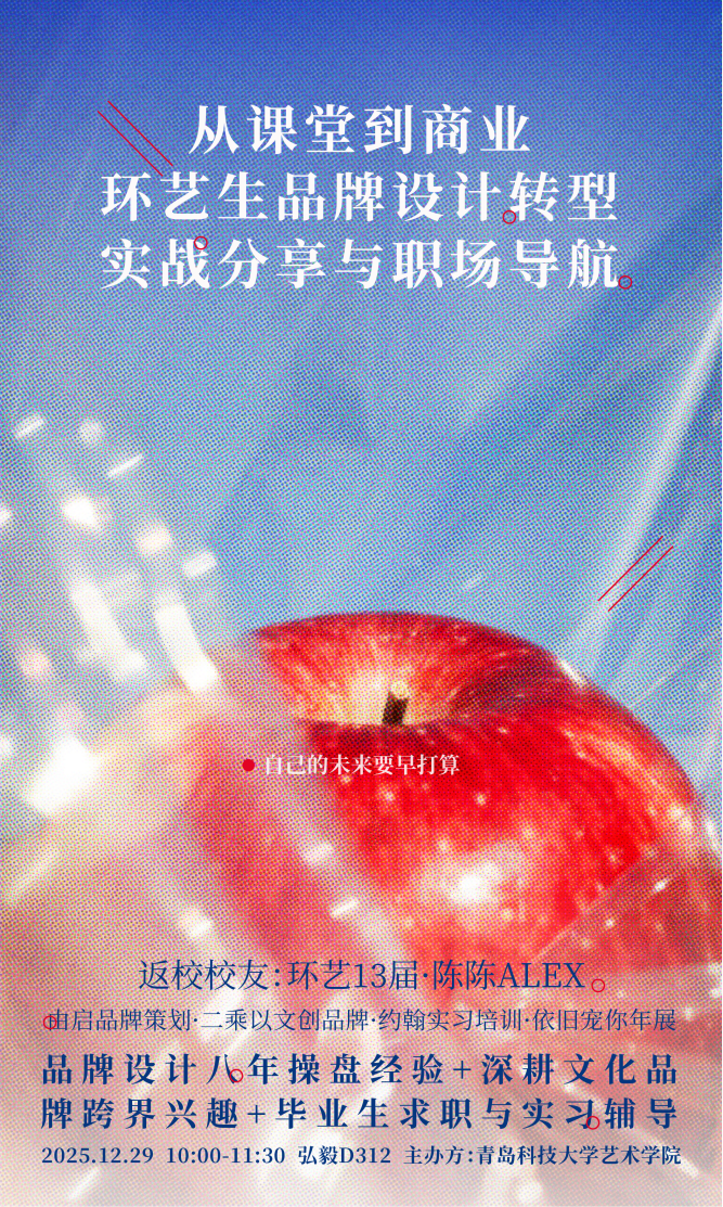 环艺系深化产学协同育人、助力学生职业发展的系列活动之一,不仅是一次经验的传递,更是一座连接校园与职场的桥梁。未来,环境设计系将持续深化“校友+”育人模式,邀请更多优秀校友现身说法,帮助同学们对设计行业、自身专业发展路径有更立体、更前瞻的认识,进一步激发学习热情与规划意识。