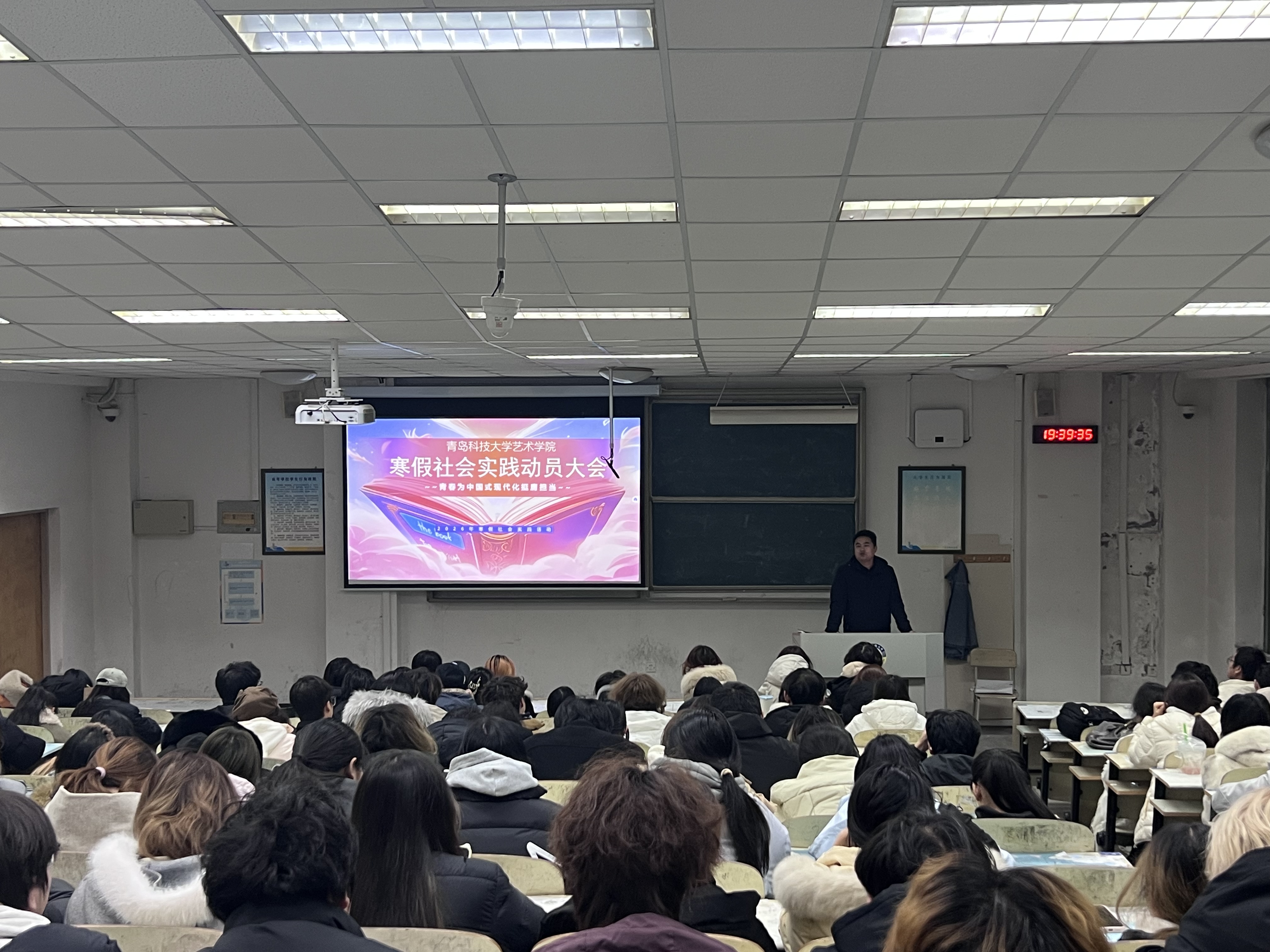 《关于组织开展2026年寒假大学生社会实践活动的通知》相关要求。针对艺术学科特色,他重点推介了“返家乡”专项活动中的文化传承、艺术设计服务基层治理,“学习雷锋树新风”志愿服务中的美育普及,以及“百万大学生进社区”中的文化宣传等适配性强的实践方向,鼓励学生将专业所长与社会需求紧密结合。研究生会主席张涵结合往届优秀实践案例,分享了艺术学子在乡村振兴设计赋能、社区美育志愿服务、非遗文化传承调研等方面的实践成果,引导新生全员参与。现场还设置互动答疑环节,针对实践选题、岗位对接、宣传推广等问题为学生逐一解惑,鼓励大家运用新媒体手段记录实践过程,讲好家乡故事与青科故事。