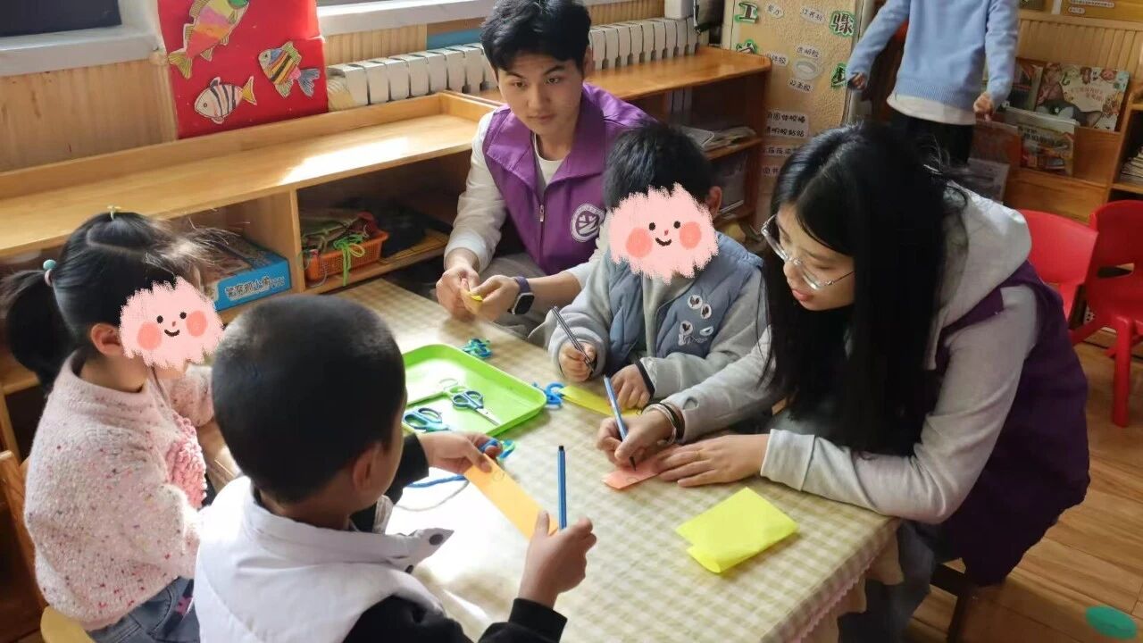 “艺术姐姐”志愿服务队走进幸福之家融合幼儿园,开展“艺暖童心,趣绘时光”志愿服务活动。