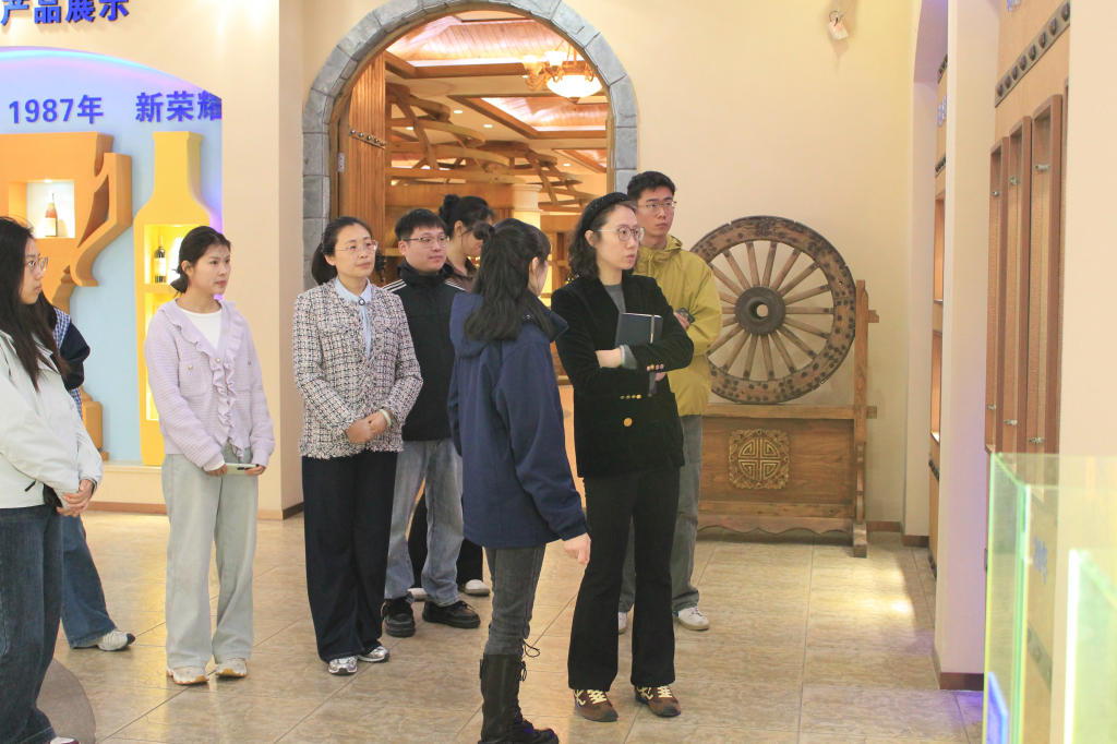 一行参观了企业专属葡萄酒博物馆、文化长廊,重点走访了百年酒标展区、橡木桶储酒区及生产工艺展示车间,全方位了解葡萄酒酿造流程、品牌视觉文化传承脉络、企业生产运营核心逻辑。双方围绕品牌视觉设计、文化传播、人才培养方向、毕业生就业输送等方面进行了深入探讨。