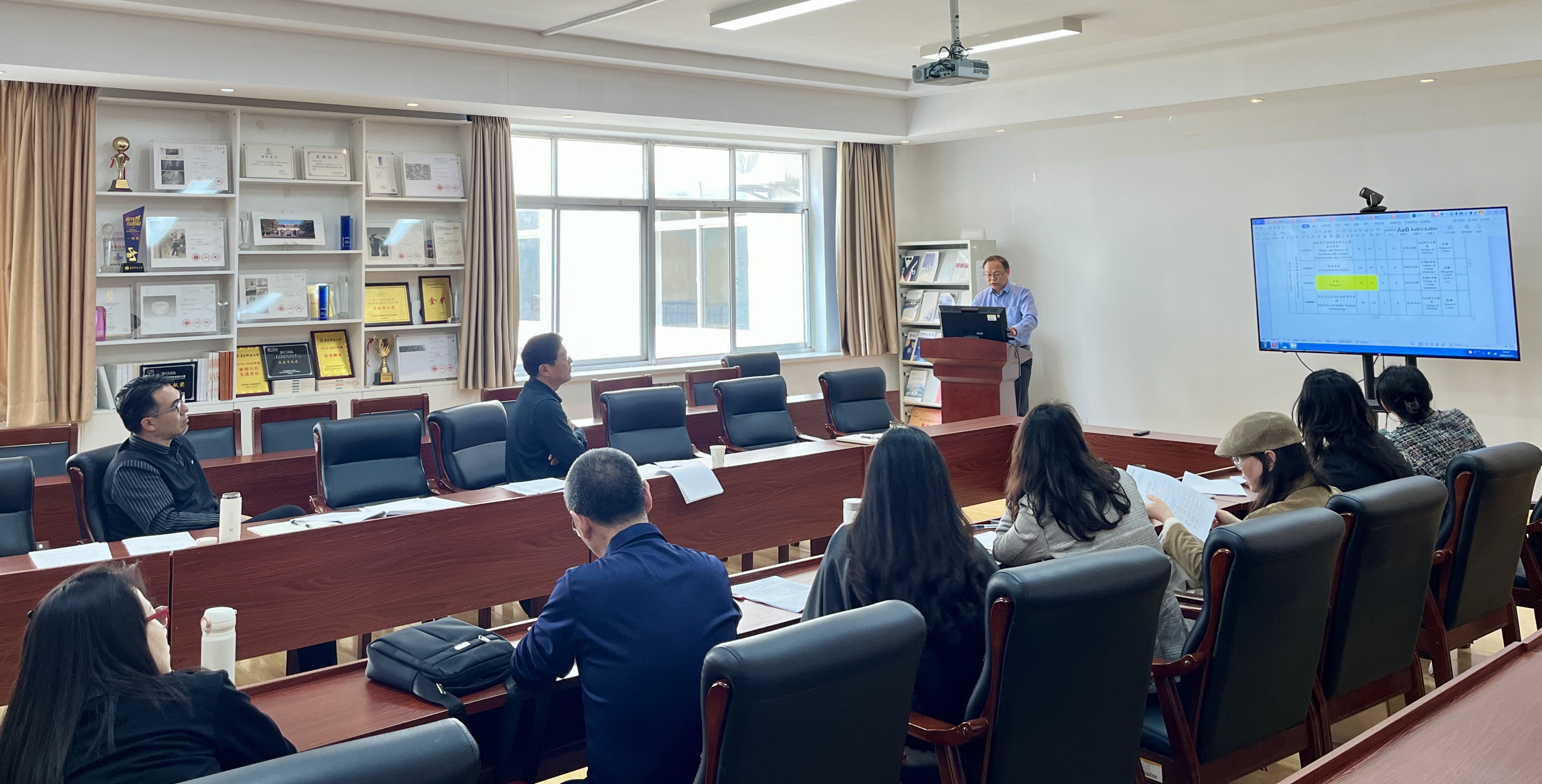 在汇报环节,围绕艺术学、美术与书法和设计三大学科方向,各方向负责人从现有课程体系、人工智能赋能、产教融合实践等维度展开汇报。汇报结束后,王春鹏教授一一给出指导意见,同时强调:“应集中优势方向,形成差异化学科特色”,并建议建立人工智能平台课共享机制。李宏文院长在会议总结中指出,新培养方案修订将着力构建“动态优化、成果导向”的培养机制,通过平台课集群建设提升教学效能,以产教融合促进成果转化,以“全流程质量监控”保障培养成果可持续。