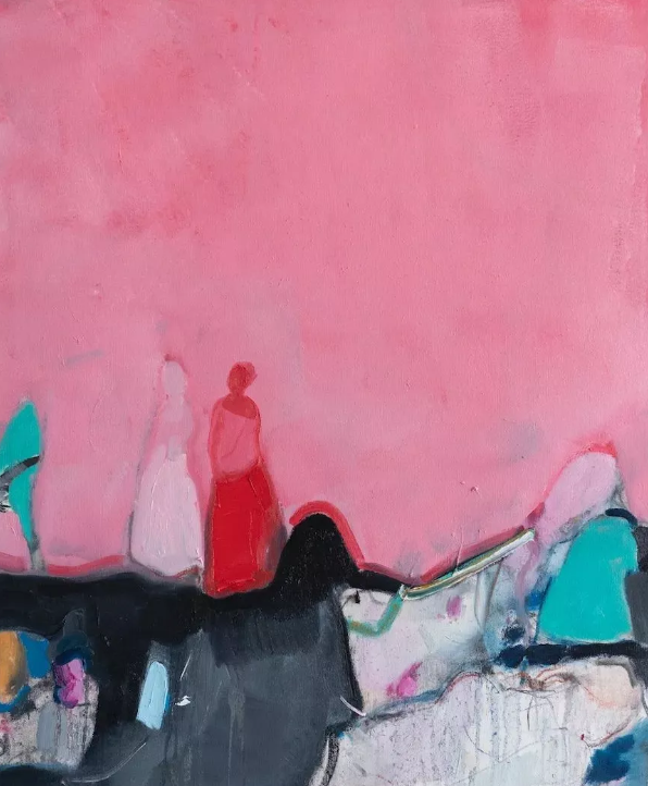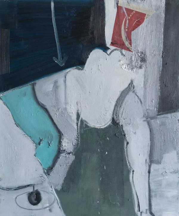 我以人的身体作为人的精神的载体,并将面孔被刻意隐去,甚至扭曲,以突出身体的整体动作的意向。感受凝结在人体的姿态之中,凝结在一笔一画地制造冲突与化解冲突的语言之中。她们或站立、或倒立、或飞翔、或挣扎,呈现出各种难以名状的姿态,暗示人的或愉悦、或苦闷、或痛苦的精神状态。画面中的直线、直面象征着技术的力量不断压迫、撞击着她们,以此表达人与其所处的世界的对峙的关系。绘画的场景无关具体现实,我只是将人体与其所处的世界做了嫁接,人成为山,山也成为人。他们的连接构造的不是关乎美的形式,而是一种关乎矛盾与痛苦的隐喻。
