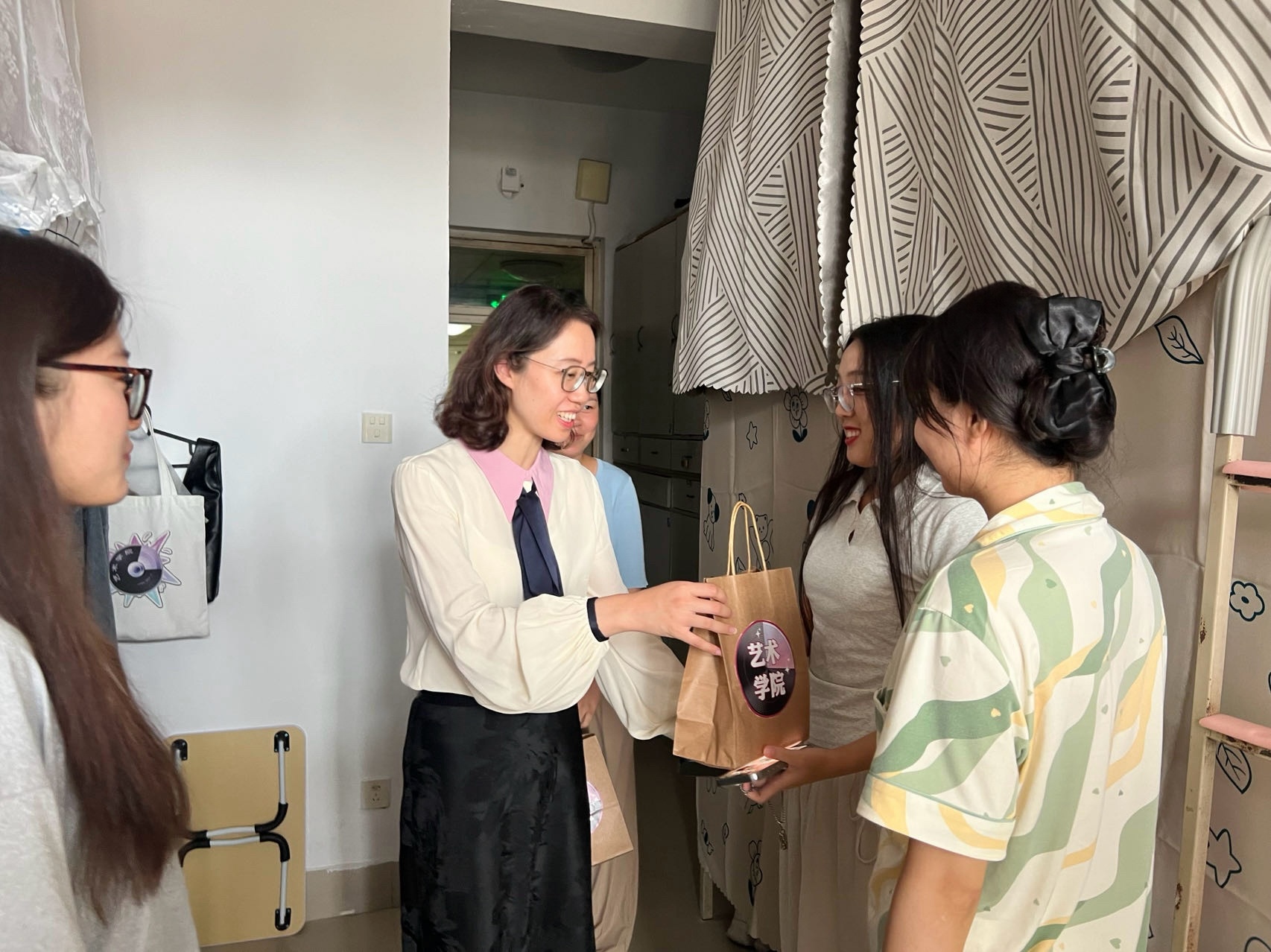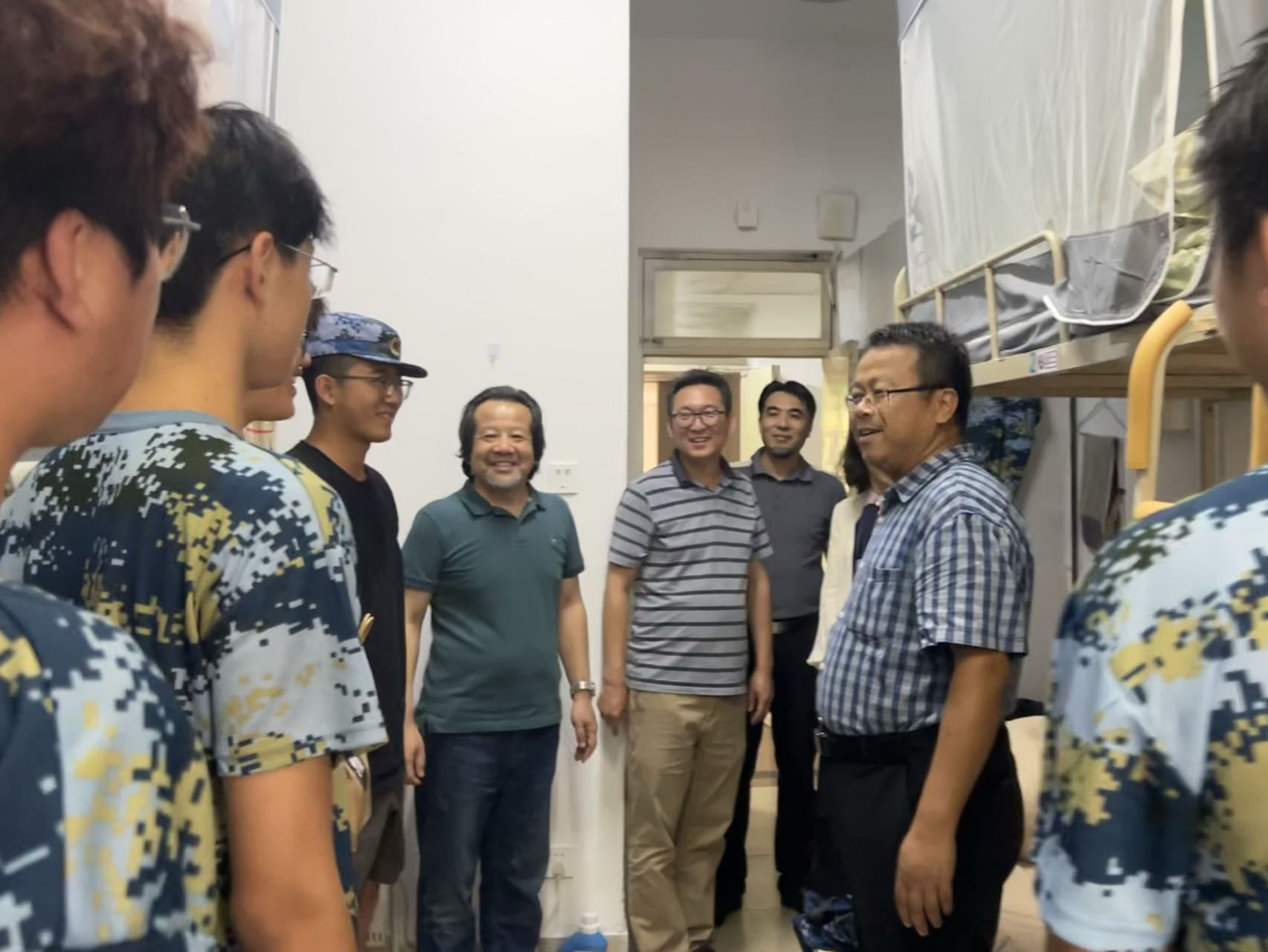 领导班子和新生辅导员走进学生宿舍,看望2024级新同学并致以节日问候。