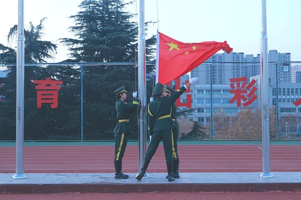 仪式在庄严的国歌声中拉开帷幕,鲜艳的五星红旗在雄壮的国歌声中冉冉升起,全体师生肃立,齐唱国歌,向国旗行注目礼。