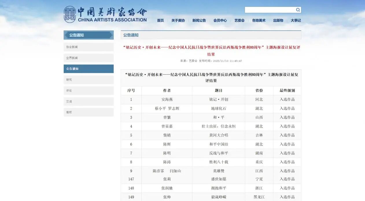 近日,由中国美术家协会、湖北省文化和旅游厅等四单位联合主办的“铭记历史·开创未来——纪念中国人民抗日战争暨世界反法西斯战争胜利80周年”主题海报设计展作品复评结果公示。星际娱乐城 视传231班张帅同学的作品《毅嵗峥嵘》从2846件作品中脱颖而出,成功入选为全国展出164件作品之一。