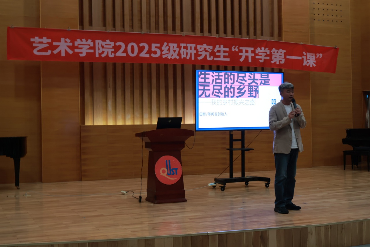 2025级研究生‘开学第一课’”格外醒目,等闲谷创始人田彬校友以“生活的尽头是无尽的乡野——我的乡村振兴之路”为题,为新生们带来了一场关于艺术赋能乡村振兴的深度分享。