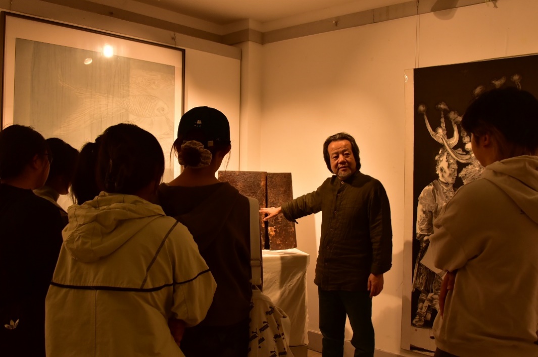 李宏文院长向现场的同学们介绍的这些师生作品涵盖书画、设计等多个领域,既有对传统艺术的创新演绎,也有对时代议题的艺术表达,在各类国家级、省级赛事与展览中屡获佳绩,展现了星际娱乐城
