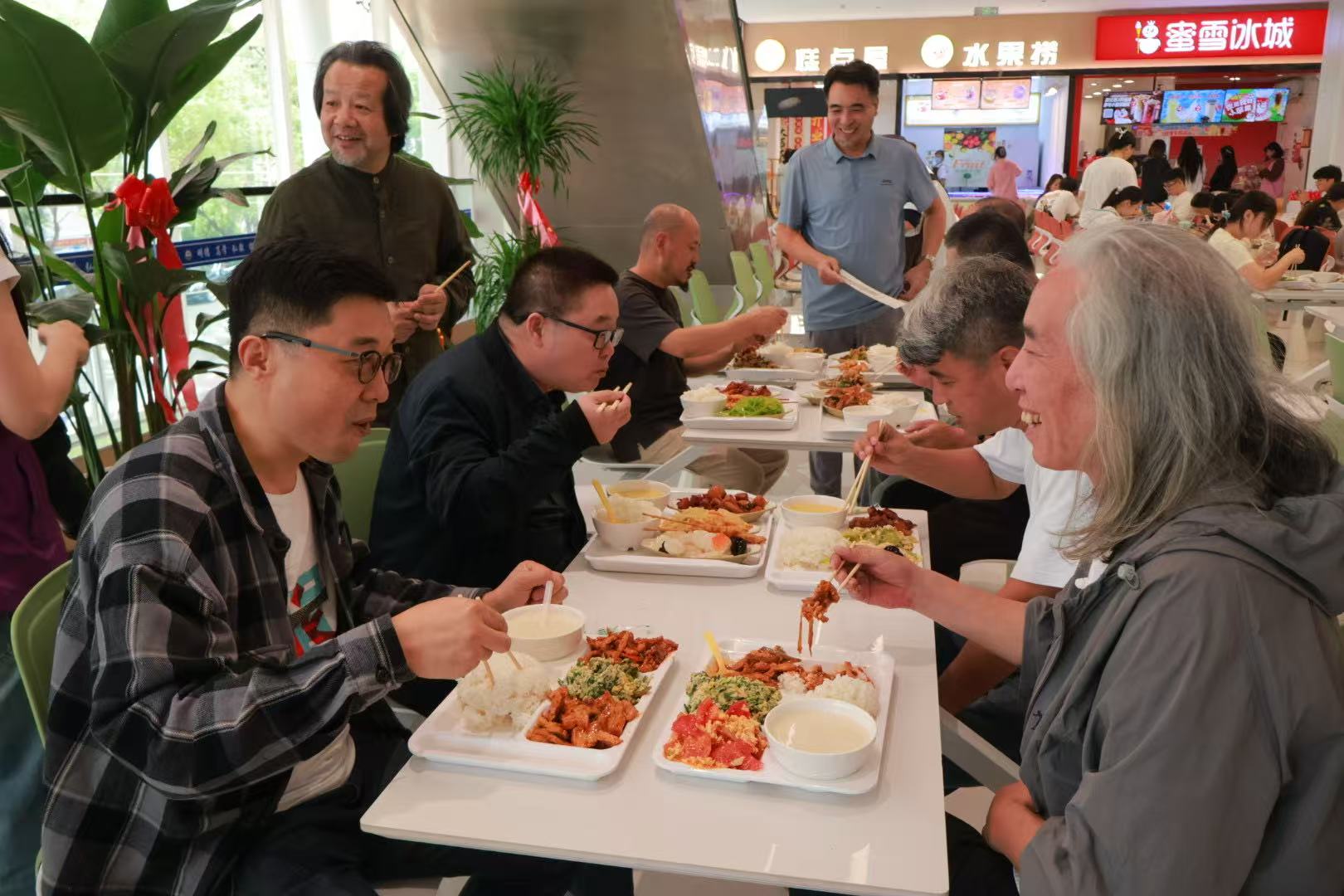 第一食堂,共同品尝承载青春记忆的“科大味道”。糖醋里脊、葱油饼、老豆腐等经典菜品上桌,瞬间唤醒校友们的校园记忆饭桌上,大家围绕求学时一起在画室熬夜创作、向老师请教书画技法的往事畅聊,烟火气中满是对母校的眷恋。