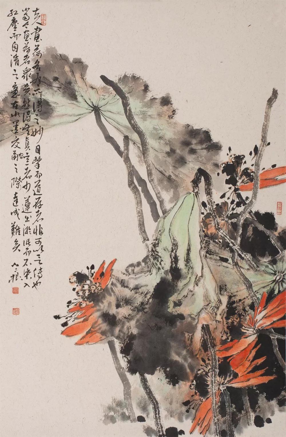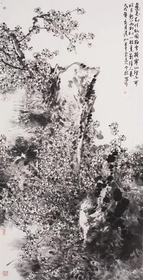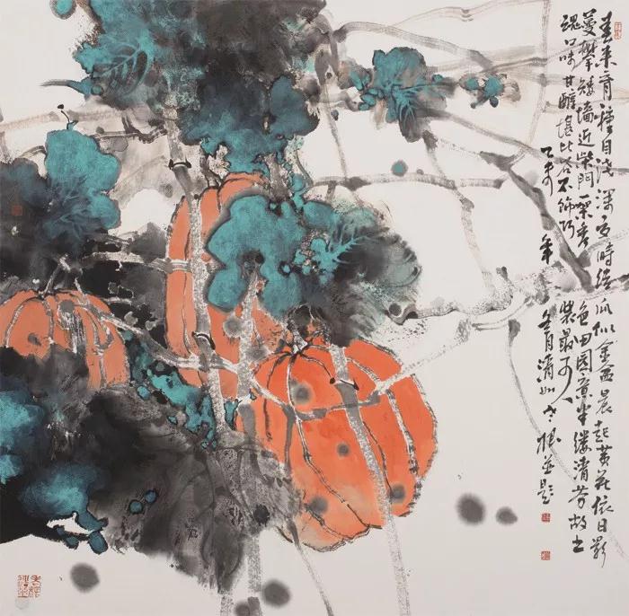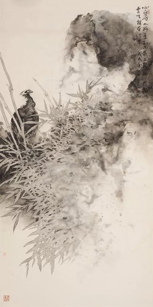 写意则是以情驱笔,遗去机巧,在大笔直写、水墨碰撞中捕捉美。从总体艺术构成上看,在偏向工笔的作品中多是可以直接解读的艺术语言,属明喻陈述性质;而写意则是在是与不是之间的审美组合,是暗示象征性的。但两者又有共通性,这就是无论偏于工笔还是写意,画家都是在抒写心境与情思,都是在追索人生的本真,在寻找心灵与艺术的契合点,即都体现出一个诚挚的艺术家对中国画艺术的终极关怀。