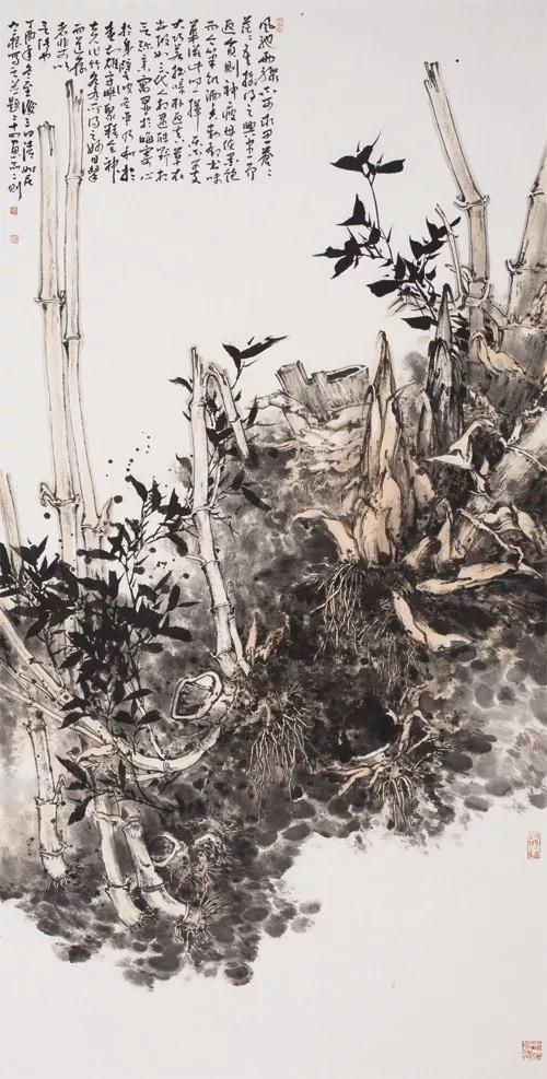 田根承很清楚,中国画的创新,经过了艺术家整整一个世纪的努力,尤其是改革开放的近四十年。创作的各种流派和形式应有尽有,如同广告一般,其范围已经达到了史无前例的程度。起决定因素的不是创新的广度问题,而是如何面对历史的时代要求,使自己的作品达到一定的艺术深度。有深度,才会有生命力。好的作品,不但要有自己真诚的艺术感情和独特的风格,更要有别人难以超越的高度。从传统意义上说,这就是作品内在的文化气息和笔墨功力。