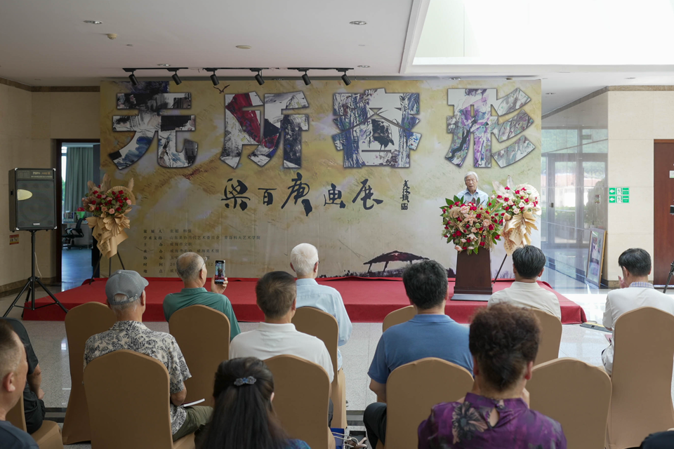 活动现场,94岁高龄的山东师范大学教授宋遂良先生也来观展。宋老给予梁百庚及画作高度评价,“梁百庚先生不但是一名充满人文情怀的艺术家,也是一名优秀的教育家。他的作品有点‘养在深闺人未识’,今后肯定会有更多的人来关注他和他的作品。”