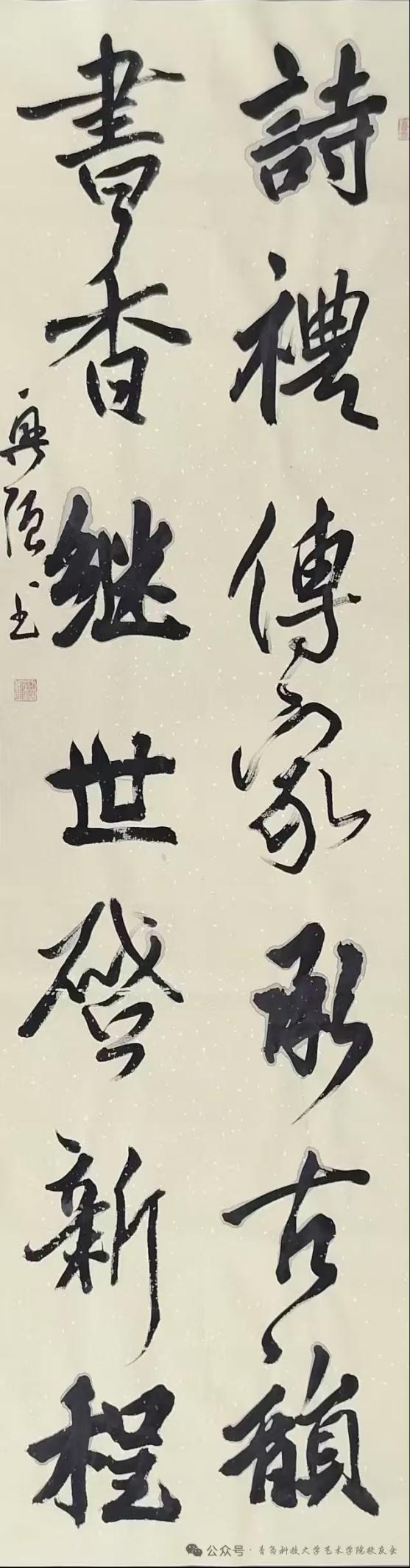 曲兴强的艺术之路,本身便是“素处以默”的生动诠释。早年投身建筑装饰行业,在钢筋水泥与喧嚣纷扰中,他始终坚守艺术理想。暮色降临,当同事们卸下疲惫消遣娱乐时,他却在狭小的工作台前,铺开毛毡,挥毫泼墨。为精进技艺,他六次参加中国书协培训中心研修班,在名师指导下,于点画之间探寻书法奥义。这份在平凡生活中坚守艺术初心的定力,与“素处以默”中摒弃浮躁、潜心求索的精神不谋而合。即便后来以书法培训为业,他依然保持低调谦逊,在教学相长中沉淀自我,将对艺术的赤诚融入日常耕耘。
