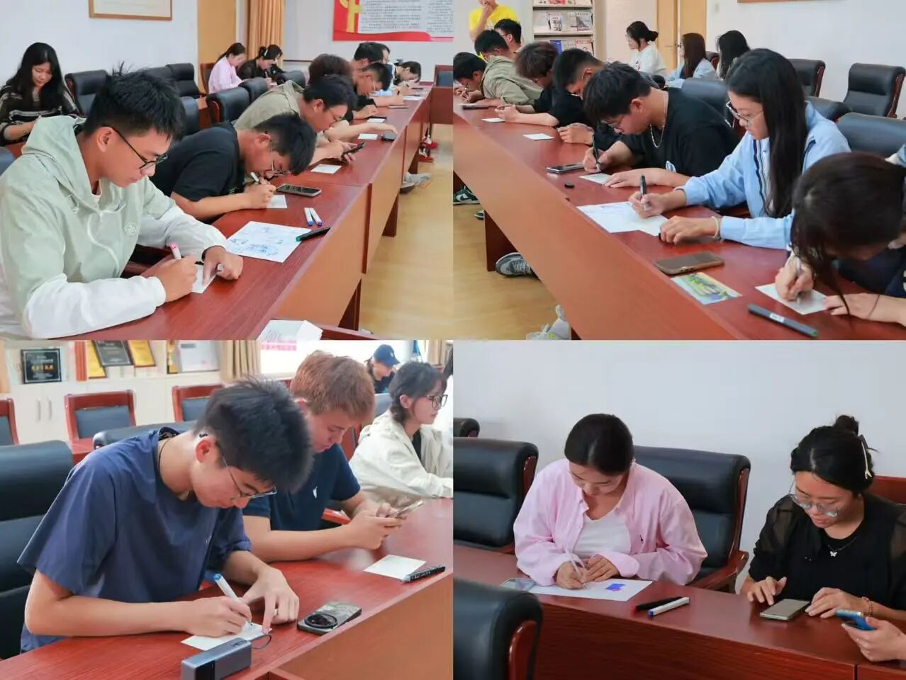 活动设置“旋律漫染,笔尖生花”绘画环节,在舒缓音乐中同学们以笔抒怀,尽情绘画释放情绪;在“青蛙跳水”趣味游戏环节中,同学们全神贯注,彼此之间动作默契呼应,现场欢笑不断;“心愿絮语簿”环节,大家手持明信片,认真写下对未来的期许。