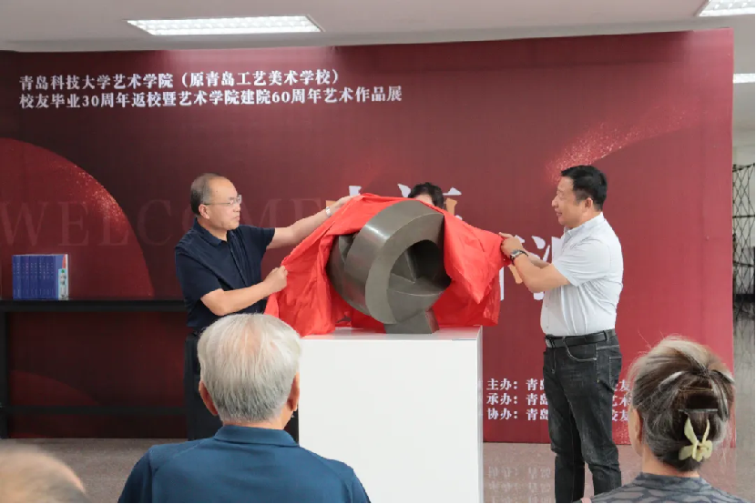 捐赠“原青岛工艺美校校址模型”,由丁林和袁翠华共同为作品揭幕并颁发收藏证书。在本次院庆活动中,还有葛正礼、刘培习、李建波、韩庆强、魏仁博、张晗东等一百多位校友为院庆活动捐款捐物。